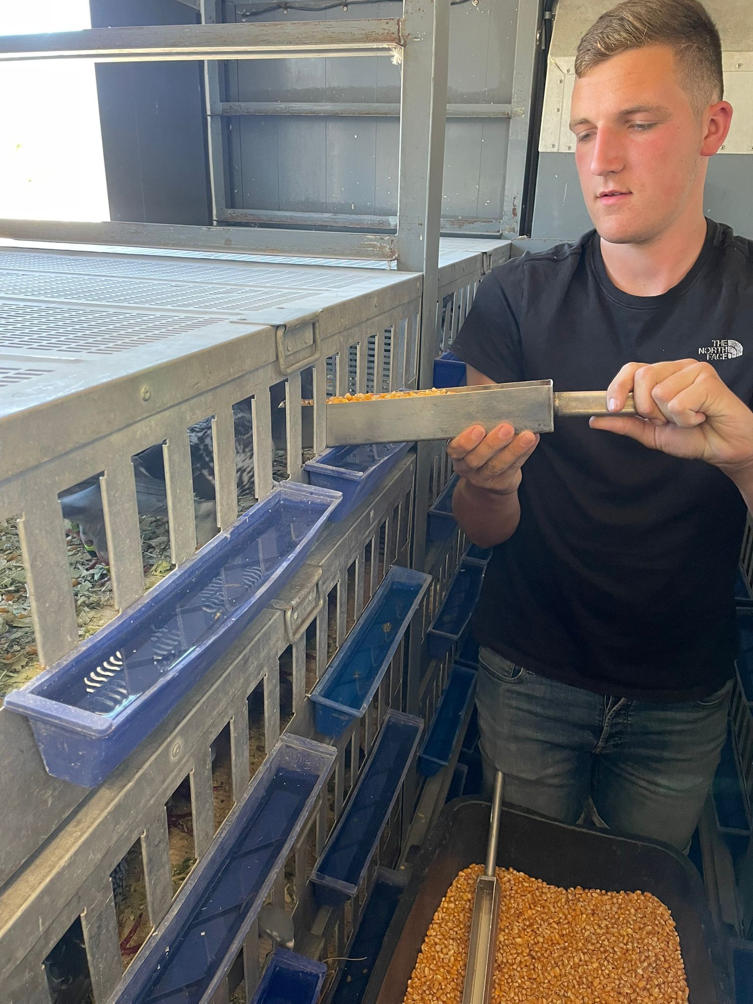 Dankzij de blauwe drinkbakjes die in elke mand bevestigd zijn, is er constant water beschikbaar voor alle duiven – ook tijdens de rit. De temperatuur in de wagen is goed en er is voldoende ventilatie. Aan de zonkant staan de deuren op een kier; zodra de zon weg is, gaan deze volledig open voor extra luchtcirculatie.